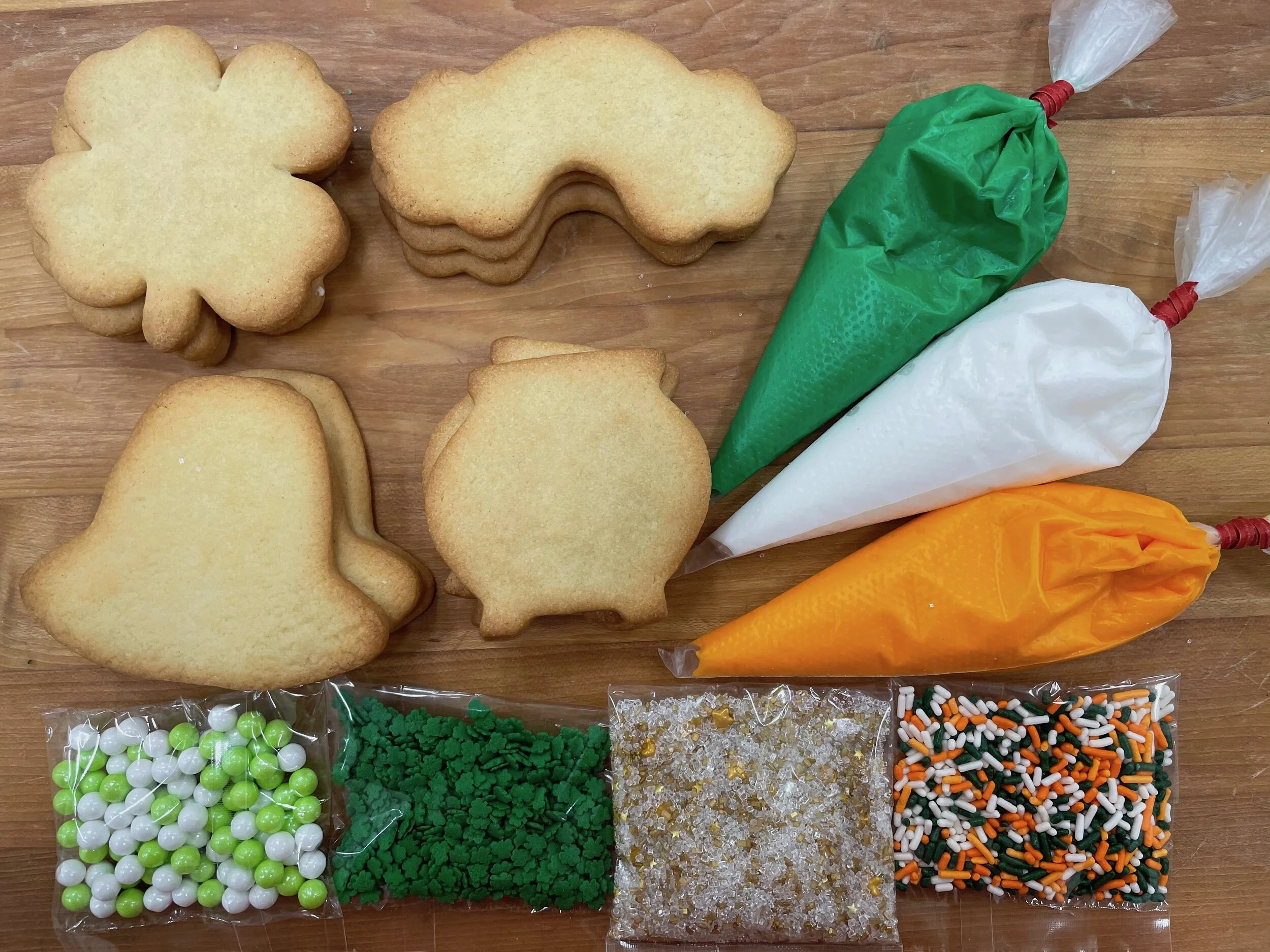 Iced and decorated cookies: wheat flour (bleached wheat flour, malted barley flour, niacin, iron, potassium bromate, thiamin mononitrate, riboflavin, folic acid), sugar, eggs, unsalted butter (pasteurized cream, natural flavorings (lactic acid, started distillate)), baking powder (sodium acid priophosphate, sodium bicarbonate, corn starch, monocalcium phosphate), salt, vanilla extract (vanilla, water, alcohol, invert syrup, propylene glycol, caramel color,(contains sulfites)).