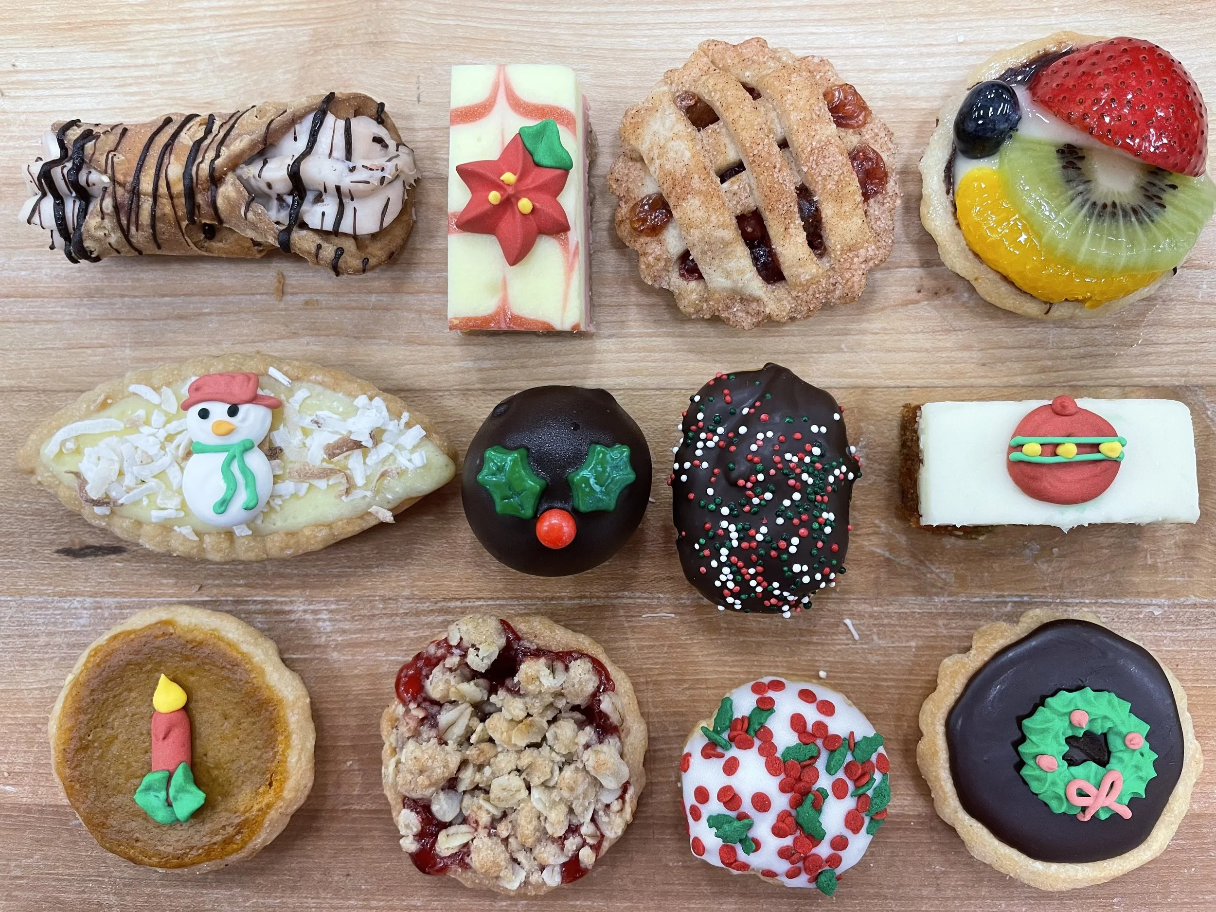 Winter/Holiday Categories: Select a Category Corporate/Logo Winter/Holiday Savory Pies Cakes Pastries Breakfast Bread Cookies Personal Gingerbread House from $9.00 Holiday Petit Fours $25.00 Winter Holiday Cookies $26.50 Decorated Snowflake Cookies $29.50 Gingerbread People $24.00 Chocolate Decadence Cake from $53.00 Pumpkin Pillows $18.00 Holiday Chocolate Mousse Domes $26.00 Mini Holiday Pies $18.00 Four Individual Fall/Winter Homestyle Pies $26.00 Mini Gingerbread House Kit $30.00 Winter Cookie Decorating Kit $30.00 Holiday Cookie Decorating Kit $30.00 Tree Cookie Decorating Kit $8.75 Snowflake Cookie Decorating Kit $8.75 Holiday Toaster Pastries from $13.50 Holiday Tea Cookies from $31.50 Deluxe Holiday Cupcakes from $26.00 Mini Holiday Pastries $27.00 Holiday Sprinkle Cupcakes from $22.00 Holiday Bling Cake from $45.00 Three Breakfast Breads #3 $30.00 Cream Cheese Cinnamon Buns $22.00 6 Cinnablobs $22.50 Quintet of Pumpkin Rolls $20.00 Chocolate Truffles $19.00 Choc. Pecan Bourbon or Pecan pie from $24.00 Pumpkin Ginger Cheesecake from $51.00 Pear and Raspberry Frangipane Tart $37.00 Pear and Apple Streusel Pie $19.00 Fuji Apple Frangipane Tart $37.00 Poached Pear Frangipane Tart $37.00 Classic Apple Pie $19.50 Classic Pumpkin Pie $20.00 Apple Cranberry Lattice Pie $20.00 Sampler of "Shorty" Cakes $45.00 Chocolate Hazelnut Sin Cake from $52.00 Old Fashioned Chocolate Fudge Cake from $46.00 Chocolate Mousse Cake from $47.00 Raspberry-White Chocolate Cheesecake from $52.00 Caramel Apple Cheesecake from $51.00 German Chocolate Cake from $46.00 Pumpkin Streusel Scones $22.50 Chicken or Bean Stew w/ Biscuits $24.00 Chili Mac-Over the Top Style $24.00 Baked Ziti with Sausage (or not) from $22.00 Homestyle Chicken Noodle Soup $17.00 Chili w/ Beef, Black Beans and Corn $20.00 Four Individual Quiches $25.00 Yule Log $50.00 Orders placed by 3:00 pm will be baked that night and ready for pick-up or delivery the following day (or a later date, if indicated at checkout) . There are no pick-ups or deliveries on Sunday.